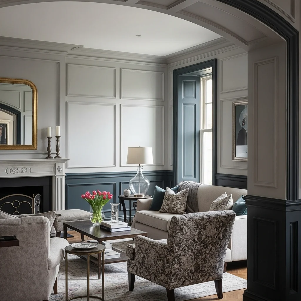Walls often represent missed opportunities for adding character and depth to living rooms. Consider installing board and batten, wainscoting, or picture frame molding to create architectural interest that elevates the entire space. These treatments add dimension and sophistication while providing visual weight that grounds furnishings. Painted molding in contrasting colors creates dramatic effect, while tone-on-tone applications offer subtle elegance.
