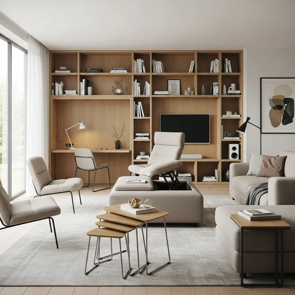 Modern living demands flexibility, particularly in smaller homes where rooms must serve multiple purposes. Design your living room to accommodate various activities through strategic furniture selection and arrangement. Ottoman coffee tables provide seating, surface space, and hidden storage in a single piece. Nesting tables separate for use around the room during gatherings, then stack neatly when not needed.