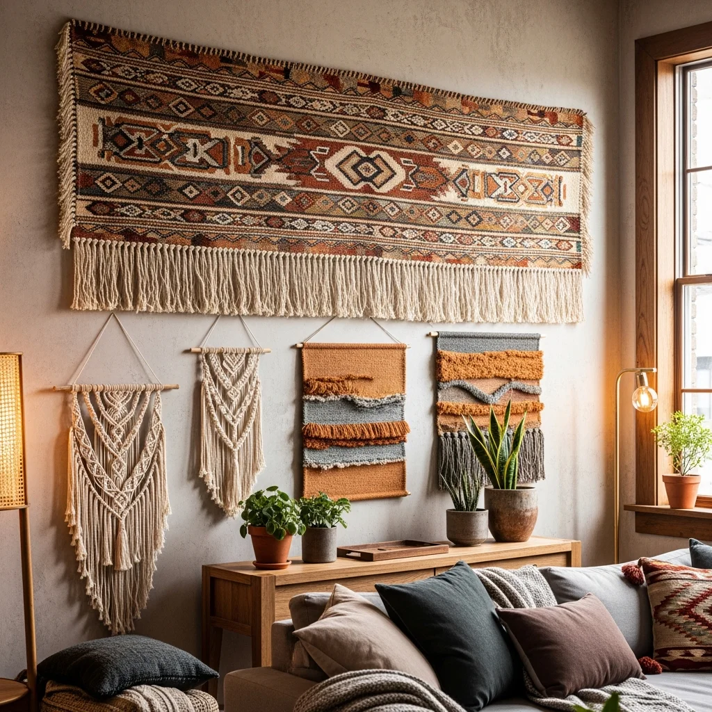 Textile wall art adds warmth and softness that hard-surfaced artwork cannot achieve. Woven tapestries, macramé hangings, or quilts displayed as art pieces introduce texture and handcrafted appeal. These elements particularly suit bohemian or eclectic design styles but can be adapted to various aesthetics through careful selection.