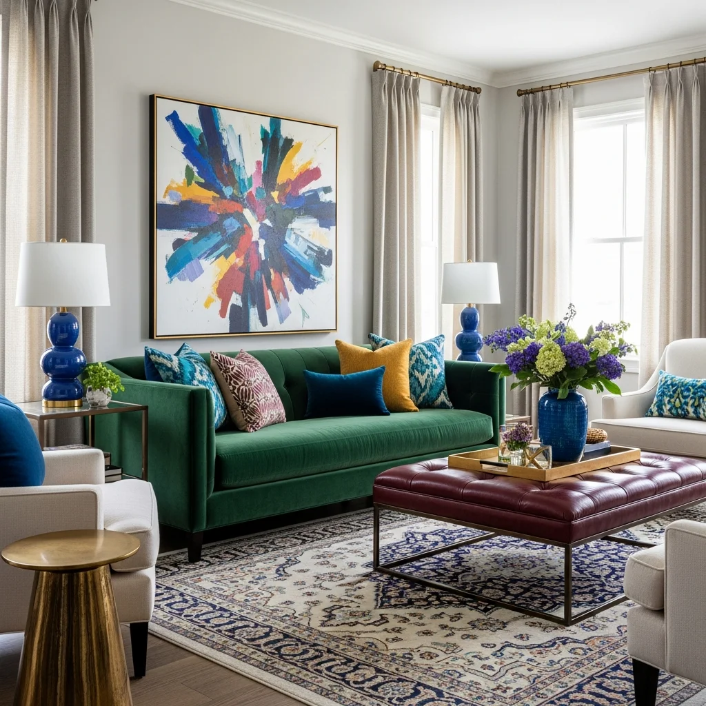 While neutral foundations create calm backdrops, strategic color injections prevent blandness and add personality. A jewel-toned velvet sofa in emerald or sapphire becomes a stunning focal point against neutral walls. Colorful artwork, vibrant throw pillows, or a bold area rug introduce hues that energize without overwhelming. The key lies in restraint and intentionality.