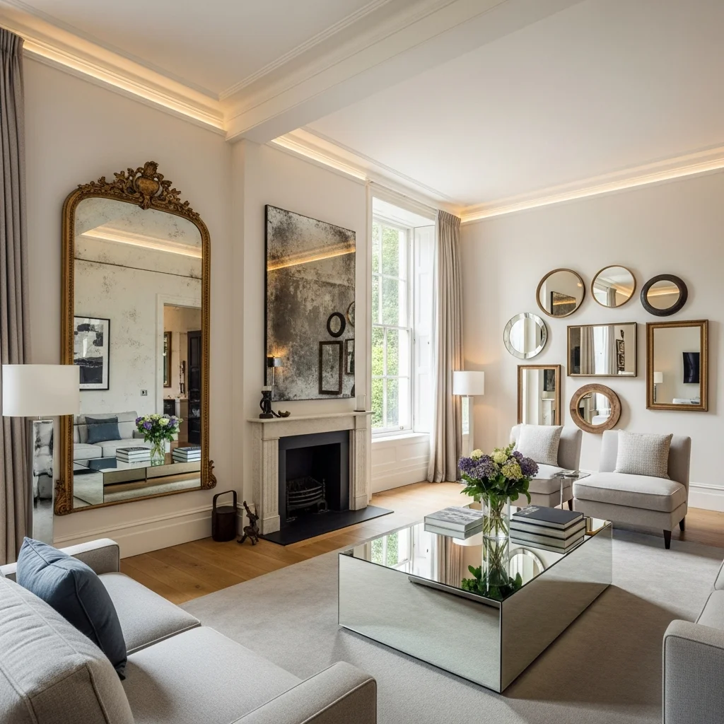 Strategically placed mirrors enhance coziness by amplifying natural light and creating illusions of expanded space. Position large mirrors opposite windows to reflect outdoor views and daylight throughout the room. Antique mirrors with ornate frames add vintage charm while serving functional purposes. Groupings of smaller mirrors arranged gallery-style create focal points while increasing ambient light.